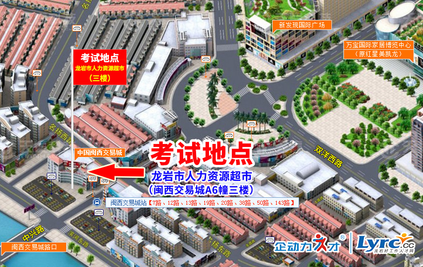 二、考試地點:龍巖市人力資源超市(閩西交易城A6幢三層)