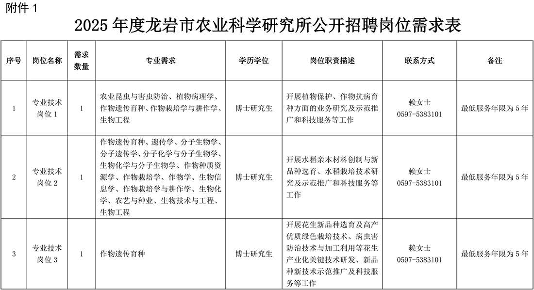 (1)《2025年龍巖市農業(yè)科學研究所公開招聘工作人員報名表》;
