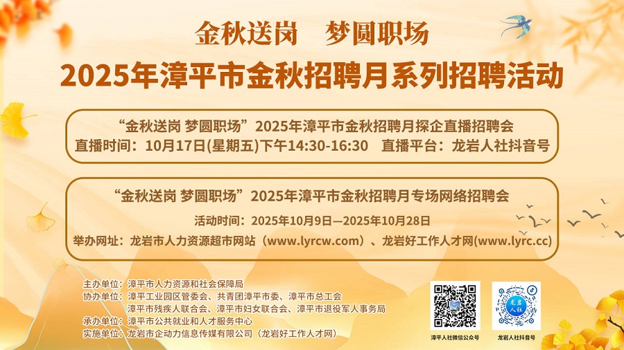 “金秋送崗 夢(mèng)圓職場(chǎng)”2025年漳平市金秋招聘月探企直播招聘會(huì) |