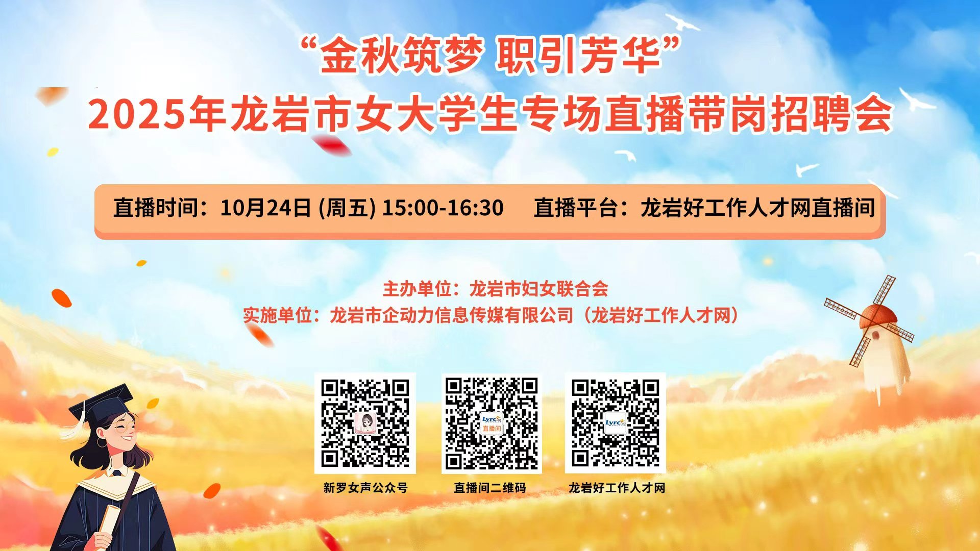 “金秋筑夢 職引芳華”2025年龍巖市女大學(xué)生專場直播帶崗招聘會