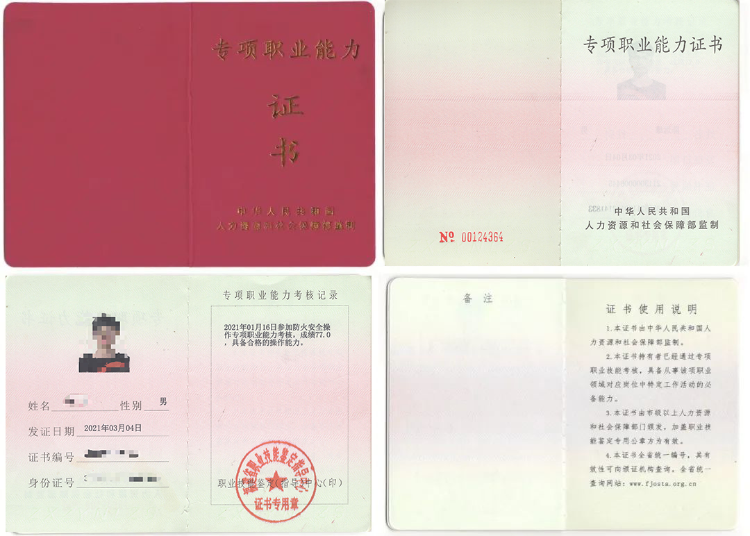 培訓后統(tǒng)一組織考試,考核通過后頒發(fā)防火安全操作專項職業(yè)能力證書。該證書由福建省人力資源和社會保障部門監(jiān)督指導,技能鑒定中心考核鑒定,可通過 “福建省職業(yè)技能鑒定指導中心” 實現(xiàn)全省聯(lián)網(wǎng)查詢,權威規(guī)范。