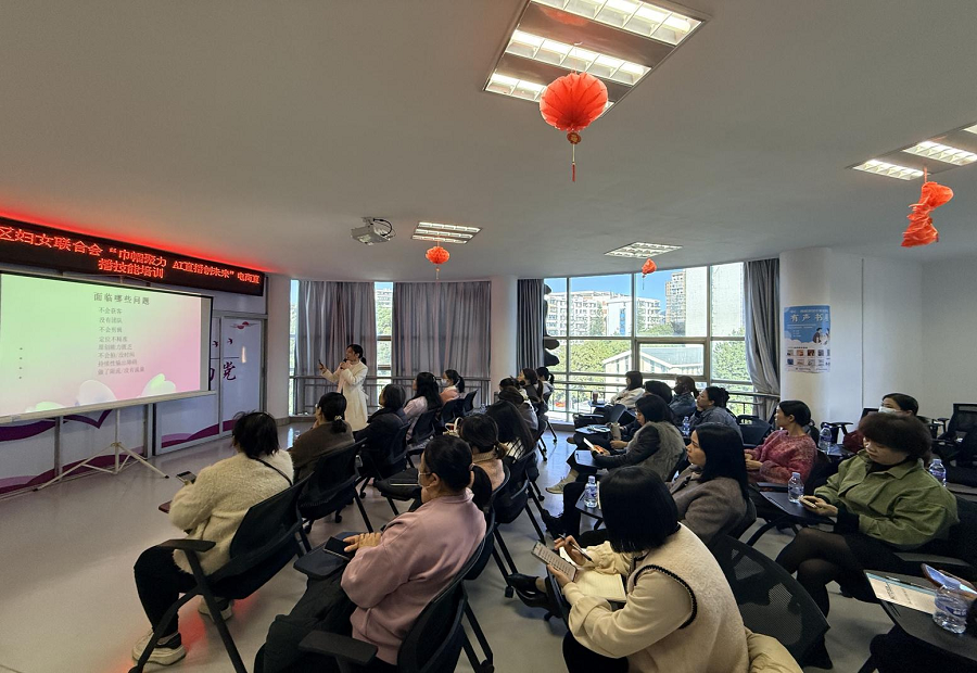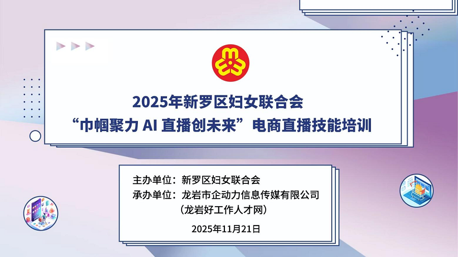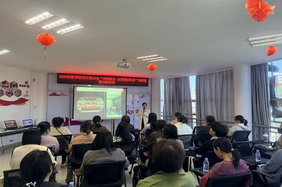 數(shù)字經(jīng)濟(jì)蓬勃發(fā)展,AI技術(shù)與電商直播深度融合,催生創(chuàng)業(yè)就業(yè)新賽道。女性憑借細(xì)膩、耐心、善溝通的天然優(yōu)勢(shì),在直播電商領(lǐng)域潛力凸顯,成為“她經(jīng)濟(jì)”發(fā)展核心力量。為助力新羅區(qū)女性把握數(shù)字時(shí)代機(jī)遇,破解傳統(tǒng)創(chuàng)業(yè)瓶頸、拓寬增收渠道,新羅區(qū)婦女聯(lián)合會(huì)于2025年11月21日成功舉辦“巾幗聚力 AI 直播創(chuàng)未來(lái)”電商直播技能培訓(xùn)。活動(dòng)旨在讓更多女性借直播電商實(shí)現(xiàn)自我價(jià)值,以巾幗之力激活消費(fèi)新動(dòng)能,在數(shù)字經(jīng)濟(jì)浪潮中書(shū)寫(xiě)創(chuàng)業(yè)增收新篇章。 本次培訓(xùn)聚焦有AI電商直播創(chuàng)業(yè)意愿的城鄉(xiāng)女性,以及待業(yè)、下崗女性及全職媽媽等群體的發(fā)展需求,打造了一套涵蓋AI電商直播核心領(lǐng)域的課程體系。邀請(qǐng)AI電商直播行業(yè)資深講師手把手教學(xué),每一個(gè)知識(shí)點(diǎn)均緊貼行業(yè)前沿與市場(chǎng)需求,通過(guò)理論與實(shí)踐深度融合,讓每一項(xiàng)技能都力求實(shí)用落地、學(xué)以致用。