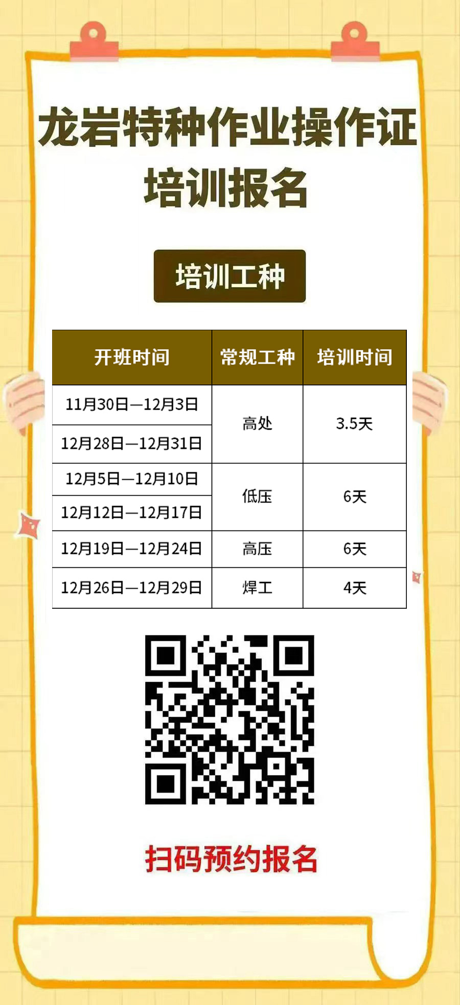 高處作業(yè)新培1班:11月30日-12月3日【3.5天】