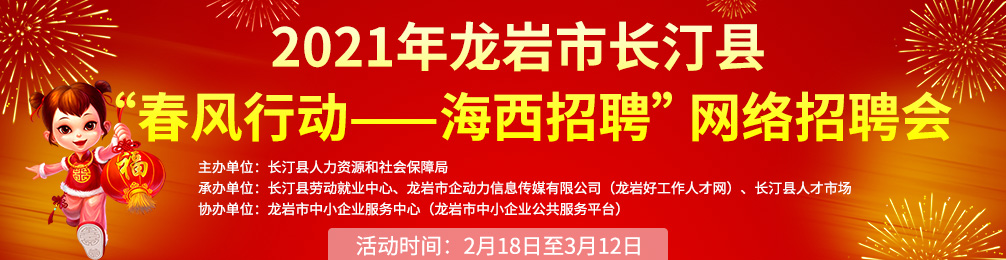 承辦單位: 長汀縣勞動就業(yè)中心、龍巖市企動力信息傳媒有限公司(龍巖好工作人才網(wǎng) )、長汀縣人才市場