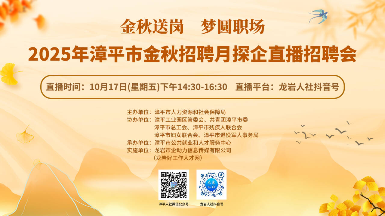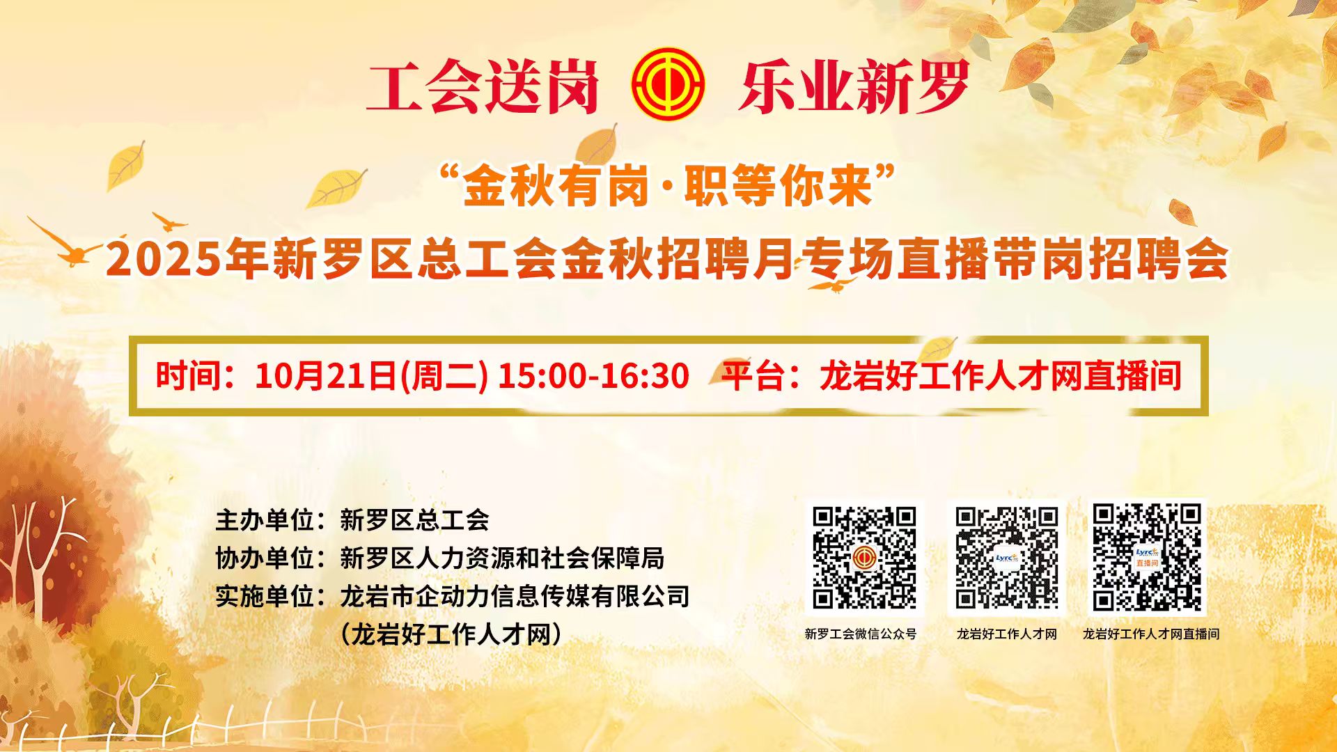 舉辦地點(diǎn):直播地點(diǎn):龍巖市人力資源超市(閩西交易城A6幢三層) 直播平臺(tái):“龍巖人社”抖音號(hào)