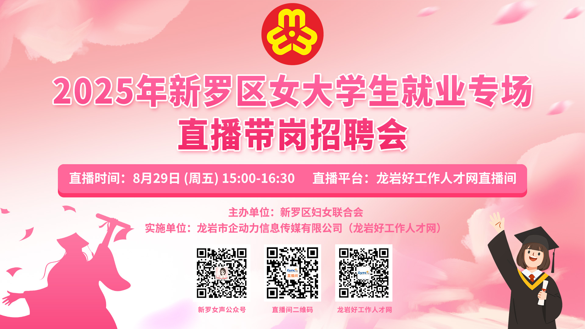 舉辦單位:新羅區(qū)人力資源和社會保障局、新羅區(qū)總工會共青團(tuán)新羅區(qū)委、龍巖市新羅區(qū)婦女聯(lián)合會龍巖市新羅區(qū)殘疾人聯(lián)合會、新羅區(qū)退役軍人事務(wù)局