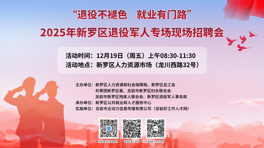 【12月19日】2025年新羅區(qū)退役軍人專場現(xiàn)場招聘會 職等你來!