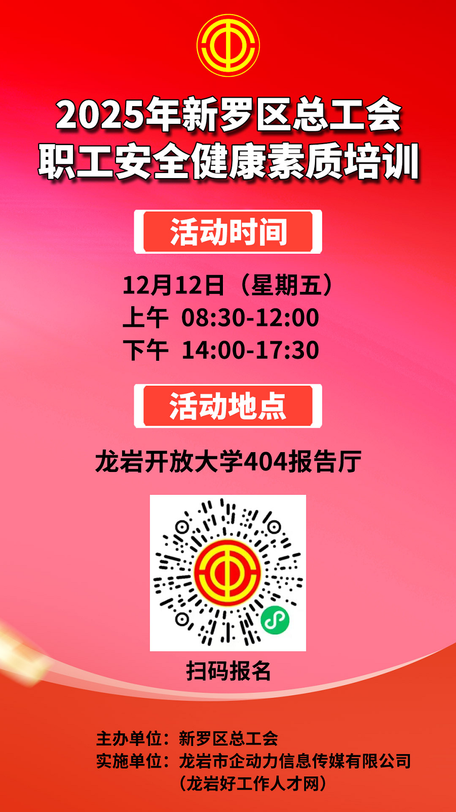 2025年新羅區(qū)總工會(huì)職工安全健康素質(zhì)培訓(xùn) 正在報(bào)名中!